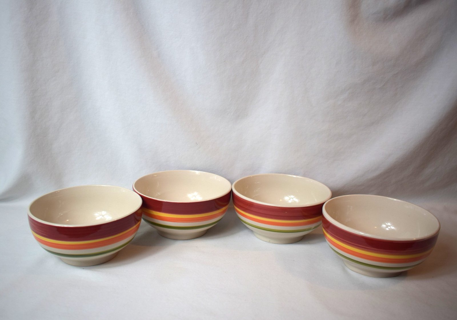 Set of 4 Royal Norfolk Striped Bowls Stoneware Red Yellow Orange Green 5.5 inch
