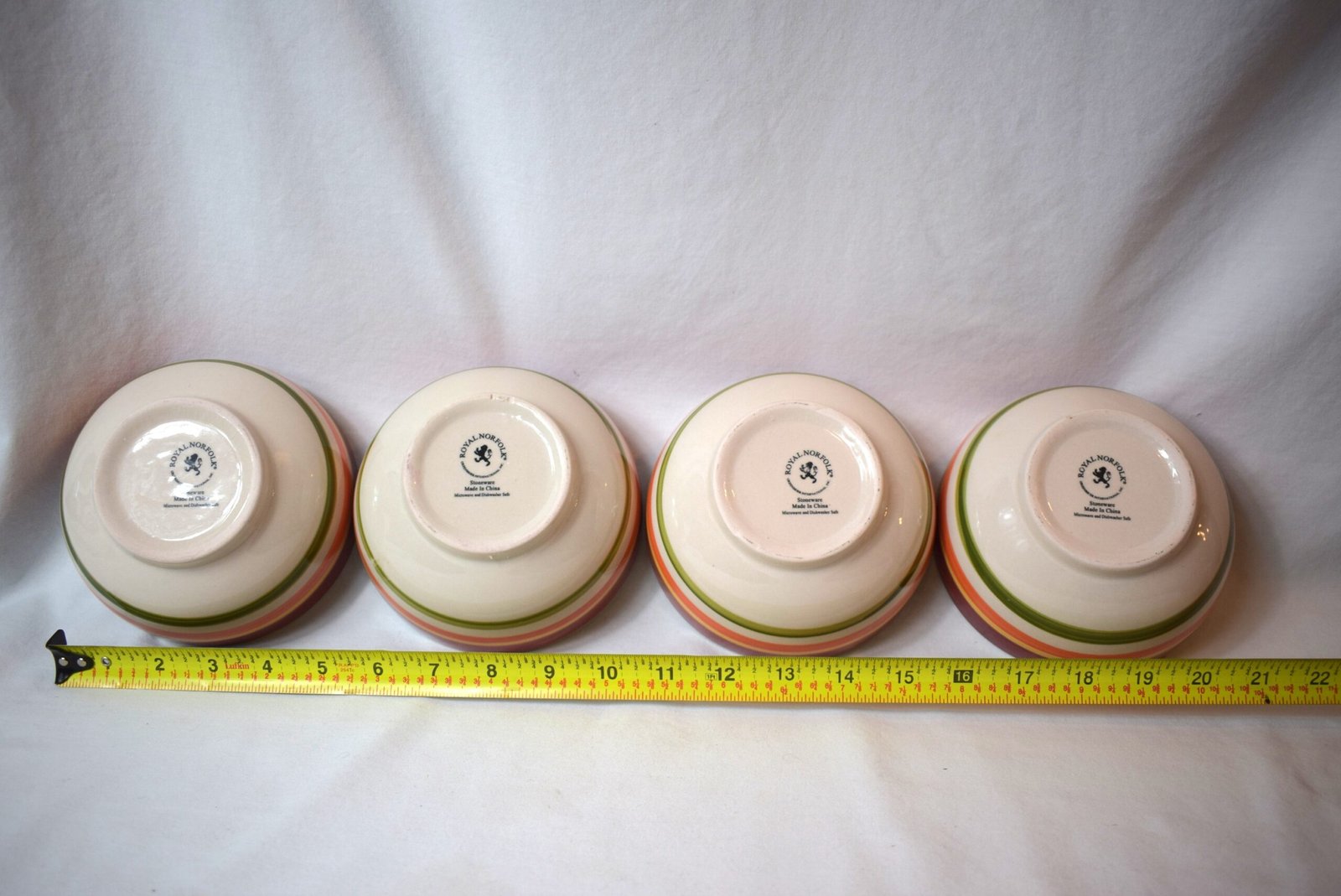 These Royal Norfolk Bowls are marked Royal Norfolk Stoneware Microwave and Dishwasher Safe