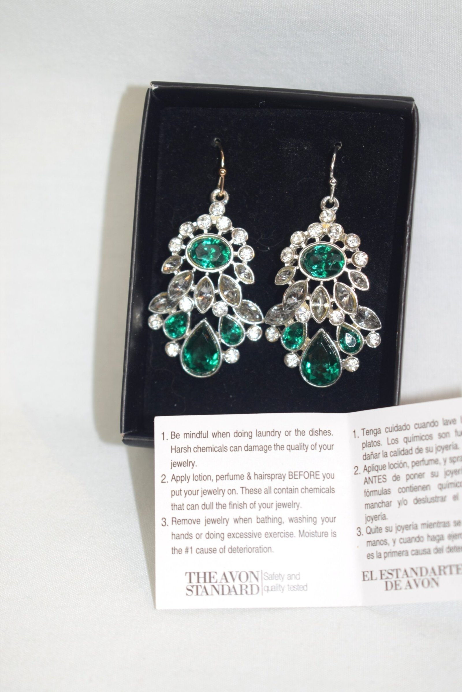 These Vintage Avon Green Crystal Earrings have no chips, no dents, no dings, no missing stones